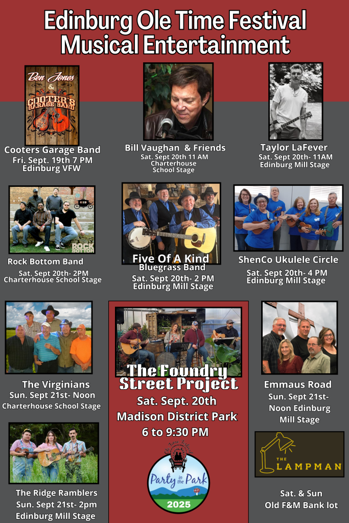 - 5:30pm -Opening Ceremony and Ole Time Sing a Along at St John’s United Methodist Church